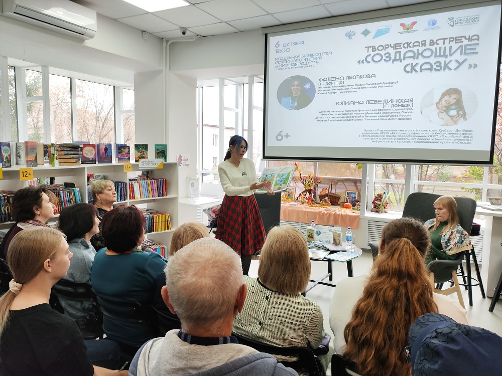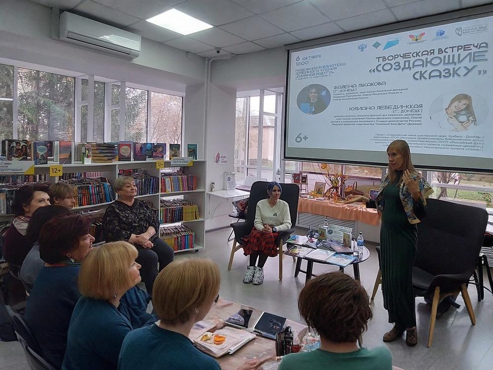 6 октября в модельной библиотеке семейного чтения «Книжная радуга» (ж.р. Кедровка, ул. Новогодняя, 2) состоялась творческая встреча «Создающие сказку» с писателями из Донецка.