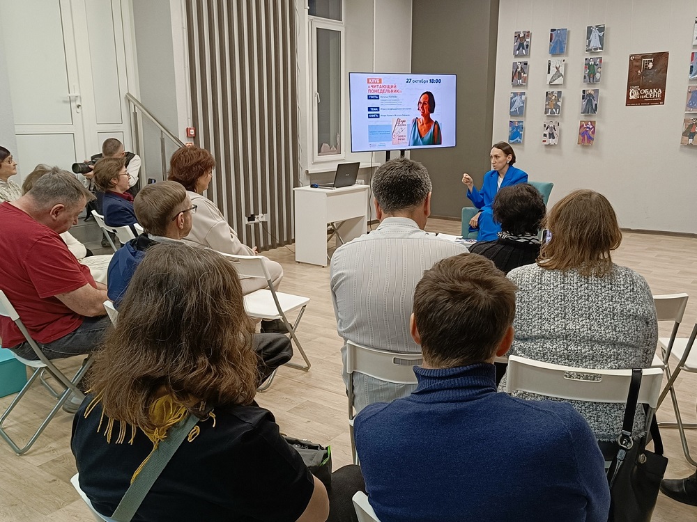 27 октября в Библиотеке городских историй прошла встреча клуба «Читающий понедельник» — значимое культурное мероприятие для тех, кто увлечён чтением и интересуется искусством слова. Гостем выступила Наталья Попова — кандидат искусствоведения, а также член Союза художников России и Союза дизайнеров России. Её богатый профессиональный опыт и творческий взгляд сделали беседу особенно интересной и содержательной. Главной темой обсуждения стала «Игра в неофициальное искусство». Участники клуба поговорили о книге Игоря Холина «Жители барака». Приглашаем всех желающих на следующую встречу клуба, которая состоится 10 ноября в 18:00. Гостем выступит Антон Абрамов — актёр, режиссёр, сценарист, клоун и преподаватель РГИСИ. Вход свободный. Подробности по телефону: 36-49-47