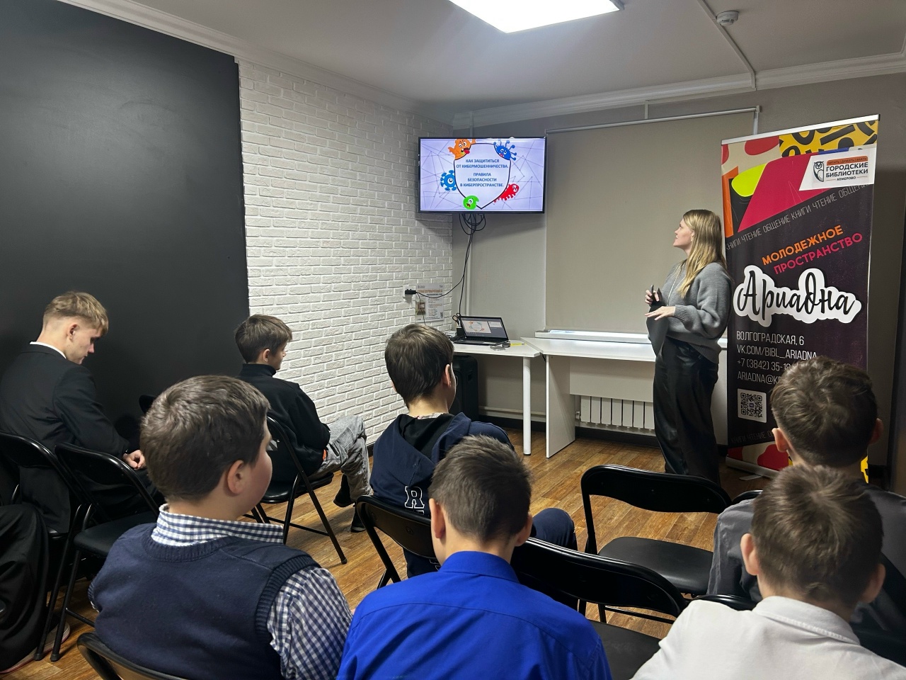 В завершение состоялась интерактивная лекция на тему «Кибермошеничество и безопасный интернет» от библиотеки «Ариадна». Участники узнали о самых распространенных видах кибермошенничества, методах защиты от интернет-угроз и принципах безопасного поведения в сети.