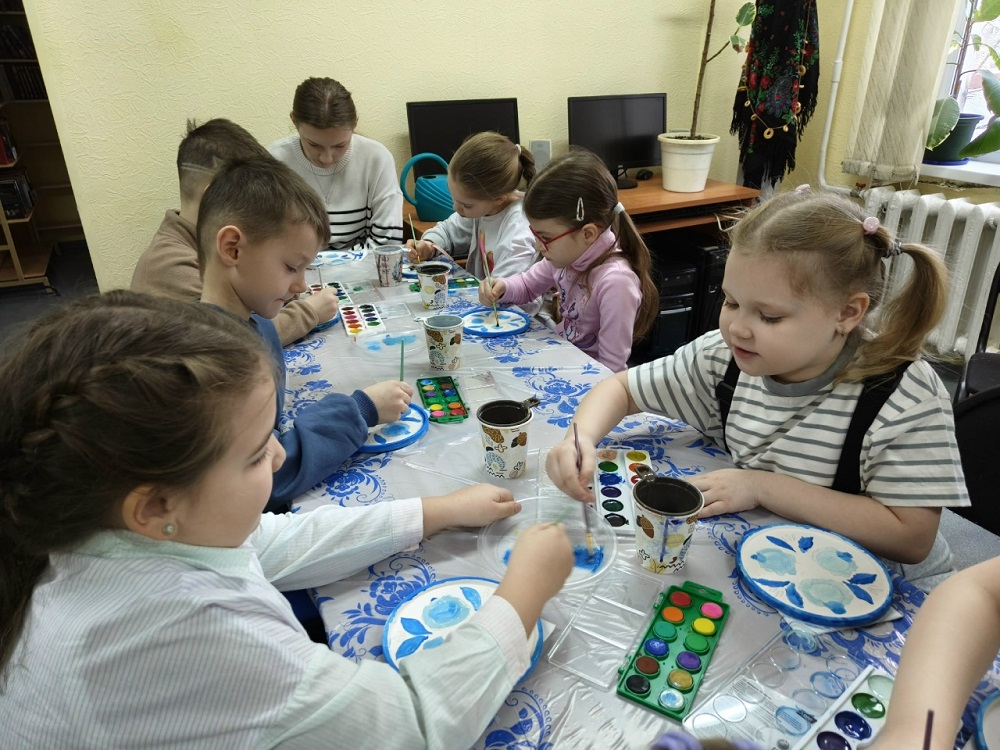 Кульминацией праздника стал творческий мастер-класс. Под руководством библиотекарей дети расписали гипсовые тарелочки, используя мотивы гжели. Каждый участник смог проявить фантазию и создать собственное изделие в традиционной бело-синей гамме.