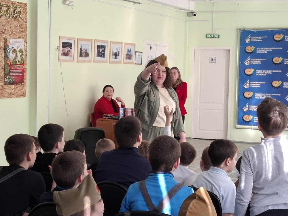 19 февраля 2026 года в Городском центре детского (юношеского) технического творчества г. Кемерово состоялся эко-вернисаж «Экологическая мозайка Кузбасса», приуроченное ко Дню защитника Отечества. Организаторами выступили сотрудники библиотеки «Книгоград» и ГЦД(Ю)ТТ. Для воспитанников центра была подготовлена насыщенная программа, направленная на патриотическое воспитание и развитие командного духа. Встреча началась с познавательной части: сотрудники библиотеки рассказали ребятам об истории возникновения праздника 23 февраля и представили книжную выставку, посвященную защитникам Родины — от былинных героев до современников. Кульминацией встречи стала командная игра-квест, в рамках которой юные участники посетили три тематические локации: - «Танкоград» — интеллектуальная площадка, посвященная истории военной техники и инженерным решениям; - «Штаб разведки» — зона, где участники проявили логическое мышление, внимательность и скорость реакции; - «Полевой госпиталь» — локация, направленная на отработку навыков взаимовыручки и оказания первой помощи. В ходе игры ребята продемонстрировали смекалку, ловкость и умение работать в команде. Завершился праздник на торжественной ноте: участники дружно исполнили легендарную песню военных лет «Три танкиста», отдав дань уважения истории и героям. Библиотека «Книгоград», тел.: 73-64-74.