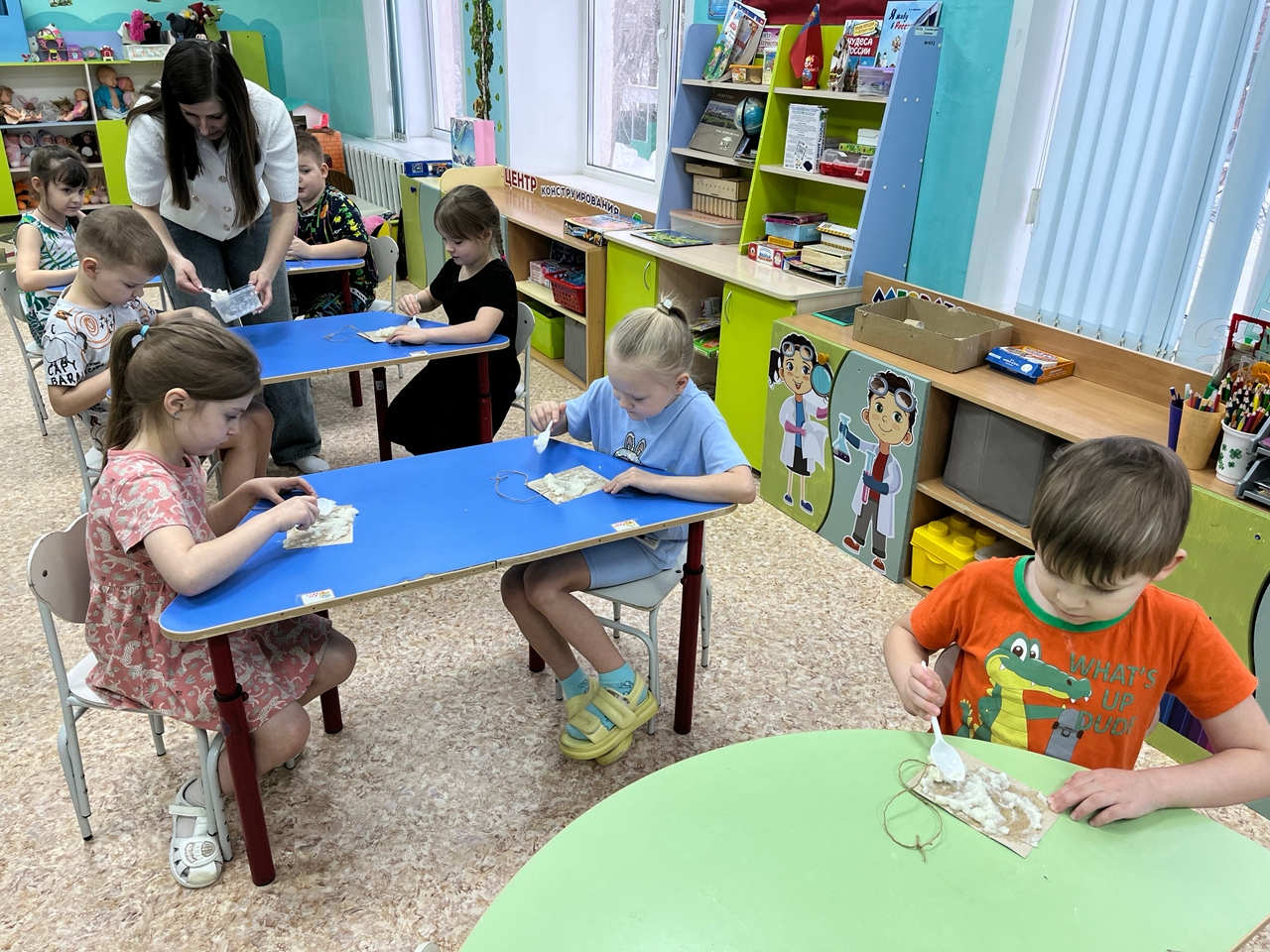 19 февраля 2026 года сотрудники Библиотеки им. Г. Е. Юрова (пр. Шахтеров, 37б) провели для воспитанников МАДОУ №131 «Детский сад общеразвивающего вида» практическое занятие «Птицы –  наши друзья. Кормушка для птиц».