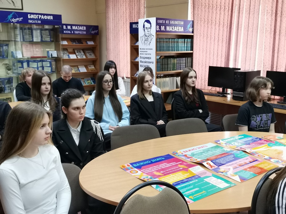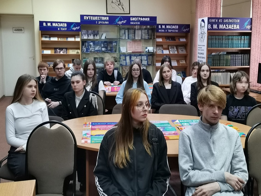 6 апреля 2026 года в Библиотеке им. В. М. Мазаева (ул. Тухачевского, 12) состоялась познавательно-игровая программа, направленная на популяризацию здорового образа жизни среди молодежи. Участниками встречи стали учащиеся старших классов МБОУ «Средняя общеобразовательная школа № 69». В роли приглашенного эксперта выступила опытный врач-эпидемиолог Жанна Николаевна Берг, представитель Государственного бюджетного учреждения здравоохранения «Кузбасский центр по профилактике и борьбе со СПИД». Главная цель программы заключалась в формировании у подростков ответственного отношения к своему здоровью через открытый диалог и интерактивное общение. В ходе встречи ребята услышали не просто лекцию, а откровенный разговор на тему, которая волнует каждого подростка. Жанна Николаевна доступно и профессионально рассказала о том, что такое ВИЧ и СПИД, о путях передачи вируса и мерах личной профилактики. Школьники активно включились в диалог: задавали вопросы специалисту, обсуждали вредные привычки и их последствия, а также принципы здорового питания и физической активности. Проведенное мероприятие стало ярким примером активной гражданской позиции Библиотеки им. В. М. Мазаева, направленной на повышение уровня медицинской грамотности и пропаганду здорового образа жизни среди жителей города. Благодарим Жанну Николаевну Берг за сотрудничество и надеемся, что полученные знания помогут ребятам сделать правильный выбор в пользу долгой и здоровой жизни. Благодарим всех участников за проявленный интерес и приглашаем на последующие встречи, посвященные актуальным аспектам охраны здоровья! Возрастное ограничение: 16+. Библиотека им. В. М. Мазаева, тел.: 54-43-98.