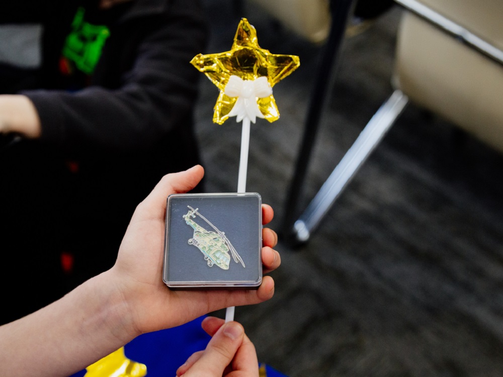 Вот кто знает о небе всё! Александр Петрович вручил фигурки вертолётов для двоих участников конкурса. Такой приз – настоящая мечта для всех любителей авиации.